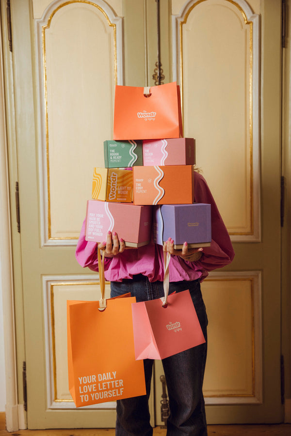 De Wondr giftbags zijn beschikbaar in drie maten en vier kleuren, elk met een leuke quote. Ze zijn niet alleen mooi om te geven, maar ook gemaakt om te hergebruiken.